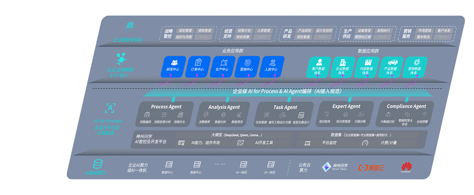 口袋牛店问学智车解决方案是一套基于AI技术的汽车行业智能化系统,,,覆盖从底层算力到顶层AI应用的全栈方案。。方案由算力层、、模型层和应用层组成:算力层,,方案支持多种一体机配置,,,具备云端灵活部署、、、多云适配以及动态优化计算资源的能力;模型层,,口袋牛店问学平台版提供了企业级AI应用一站式构建与管理平台,,,,支持基于后训练强化技术的汽车企业专属模型的训练、、、、评测和运营;应用层,,,,口袋牛店问学DeepSeek版提供包括超级员工、、、智能招采、、智能营销、、、智能客服、、、、AI for BI等一系列解决方案,,,,可助力汽车行业实现数字化转型,,,,让管理更智能、、响应更敏捷。。。。