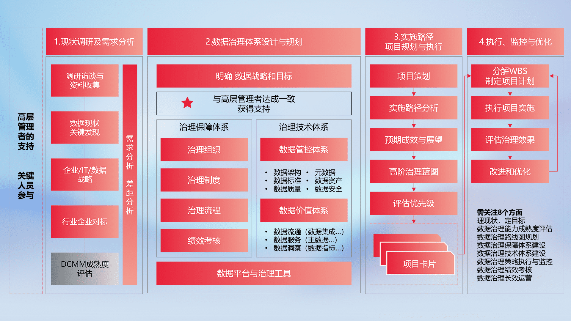 制定并执行统一的数据标准,,,,规范数据定义和格式,,,消除冗余和不一致性,,实现跨部门和跨系统的数据一致性,,,为企业提供标准化的数据基础。。。。